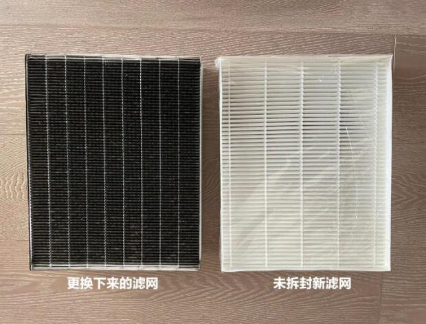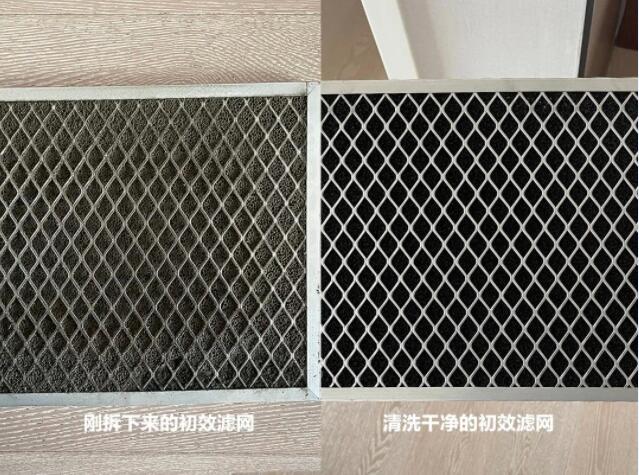 經(jīng)過長時間的使用,可以看到原本白色的高效濾網(wǎng)已經(jīng)變成了黑色,初效濾網(wǎng)更是積滿了厚厚的灰塵。業(yè)主表示使用過程中設(shè)備雖然一直開著,其實并沒有太大的實際感受,沒想到拆下來的濾網(wǎng)居然這么臟,要是沒有安裝新風系統(tǒng),這些污染物全都稀釋為自己家里空氣的一部分了,想想都后怕。