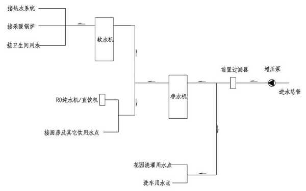 家用中央凈水系統(tǒng)包括前置過濾器、凈水機、軟水機、純水機、直飲機。